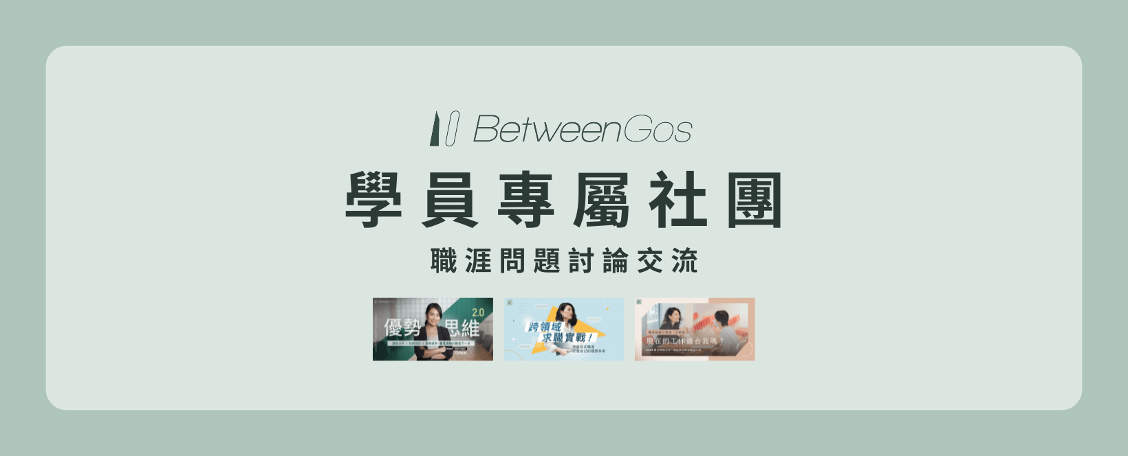 在這裡,我們為你準備了【學員專屬社團】,所有 BetweenGos 的學員都能夠集中在一個地方,透過實名或匿名的方式提問,講師 Grace 與助教也會在社團中,和不同產業、職位的大家,一起討論、分享。