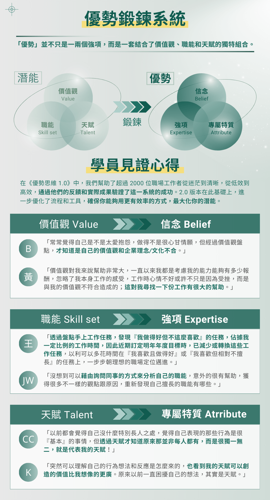 潛能分析,優勢具體化|拆解價值觀、職能、天賦,並具體化成你的一頁式優勢說明